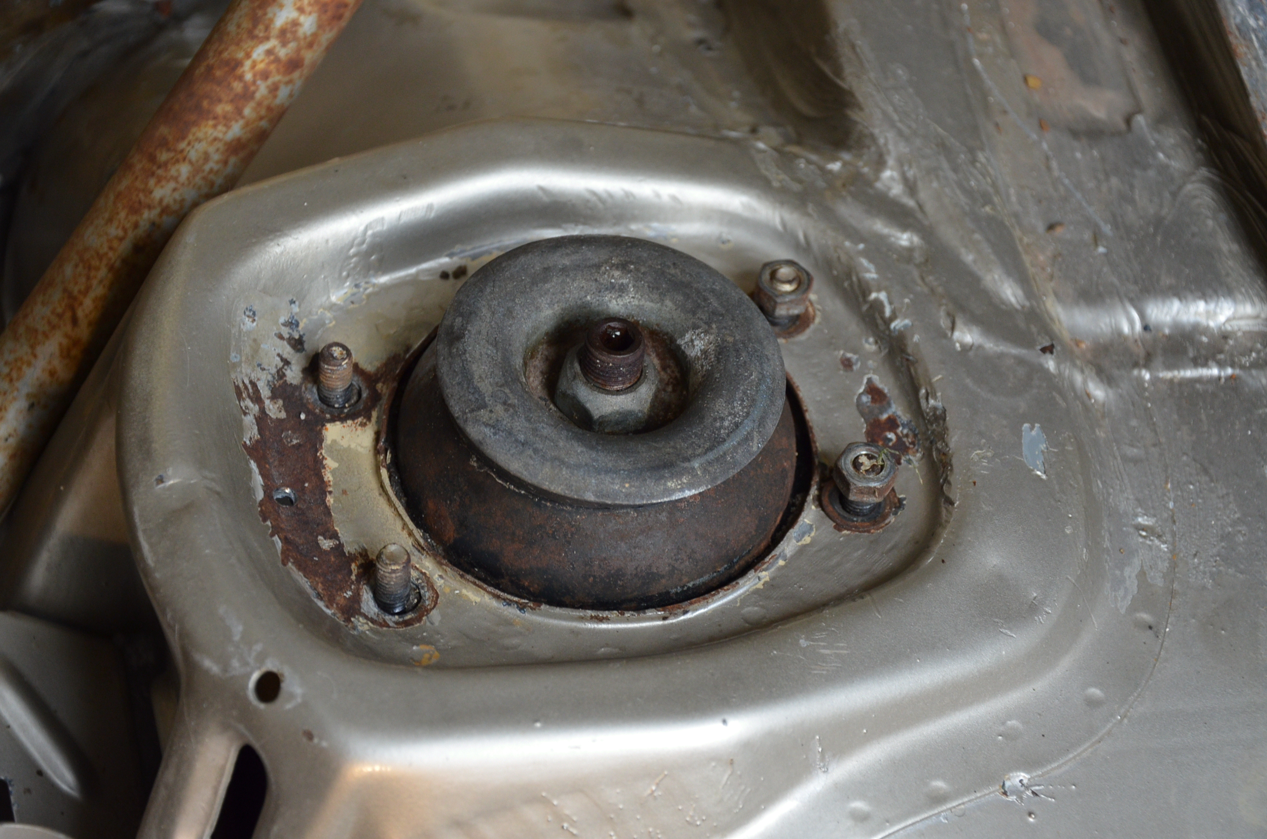Corrosion de la tête d'amortisseur gauche